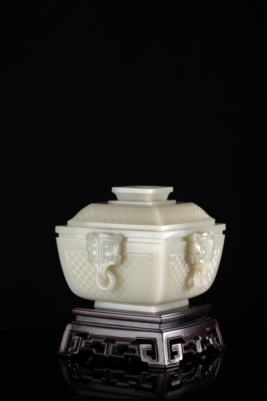 他的白玉器皿件,常被业内视为标杆。有的造型厚重庄严,取意古器,却不复古;有的薄胎空灵,光影可入,带着当代审美的轻盈感。它们不靠繁复取胜,而是通过比例、线条与虚实关系,让玉本身成为主角。正因如此,《兽面水洗》《方鑑》《莲花双耳瓶》《象耳瓶》等作品,先后被中国美术馆、苏州博物馆等机构永久收藏,成为当代玉雕中“耐看”的存在。