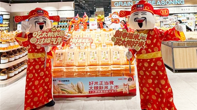 除核心互动活动外,太粮专为春节场景升级产品包装,以红金为主色调融入马年生肖元素与传统吉祥纹样,让产品成为传递年味的“视觉符号”,让更多家庭在年货筹备中轻松选购到优质放心的大米;全国商超同步开展满额赠福袋、抽奖赢限定周边、限时折扣等促销活动,让消费者在选购优质大米的同时,收获额外新春惊喜。