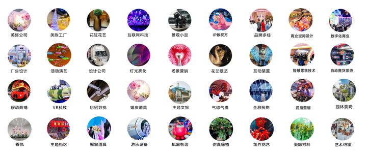 美陈展自首届举办以来吸引了大批行业内知名展商莅临参展,街景梦工场、香港朗申、大连博涛、派沃设计、和桥机构、哈蜂科技、汇纳科技、夏谷暑雨、风潮场景、麦康灯光、上海新创华、PPW、奥飞、咏声动漫、冯氏集团、逐梦年代、感映艺术、脸脸科技、达斯琪、北京柏焓、上海品创、深圳创鑫鸿、鸣思广告、夜空彩虹、北京橙工场、浙江刻度标识、中航标识、大明气模、法拉沃照明、中国公共空间表演联盟、球迷气球、绳网部落、聚英堂、自贡海天彩灯、悦时光、百界工艺、深圳飞越创意、哈工大机器人、联泰科技、金石三维、深圳小橙堡、有维文化科技、cofe+机器人咖啡、康瑄科技等展商囊括商业美陈、文旅美陈、美陈制作工厂、美陈设计、IP授权、灯光美陈、智慧系统、标识标牌、纸艺花艺、3D打印、游乐设备、移动商铺、科技互动、活动演艺、美陈材料、园林景观到婚庆美陈等全链条多元化美陈领域持续丰富并推动着美陈展成为美陈行业领先的大展。