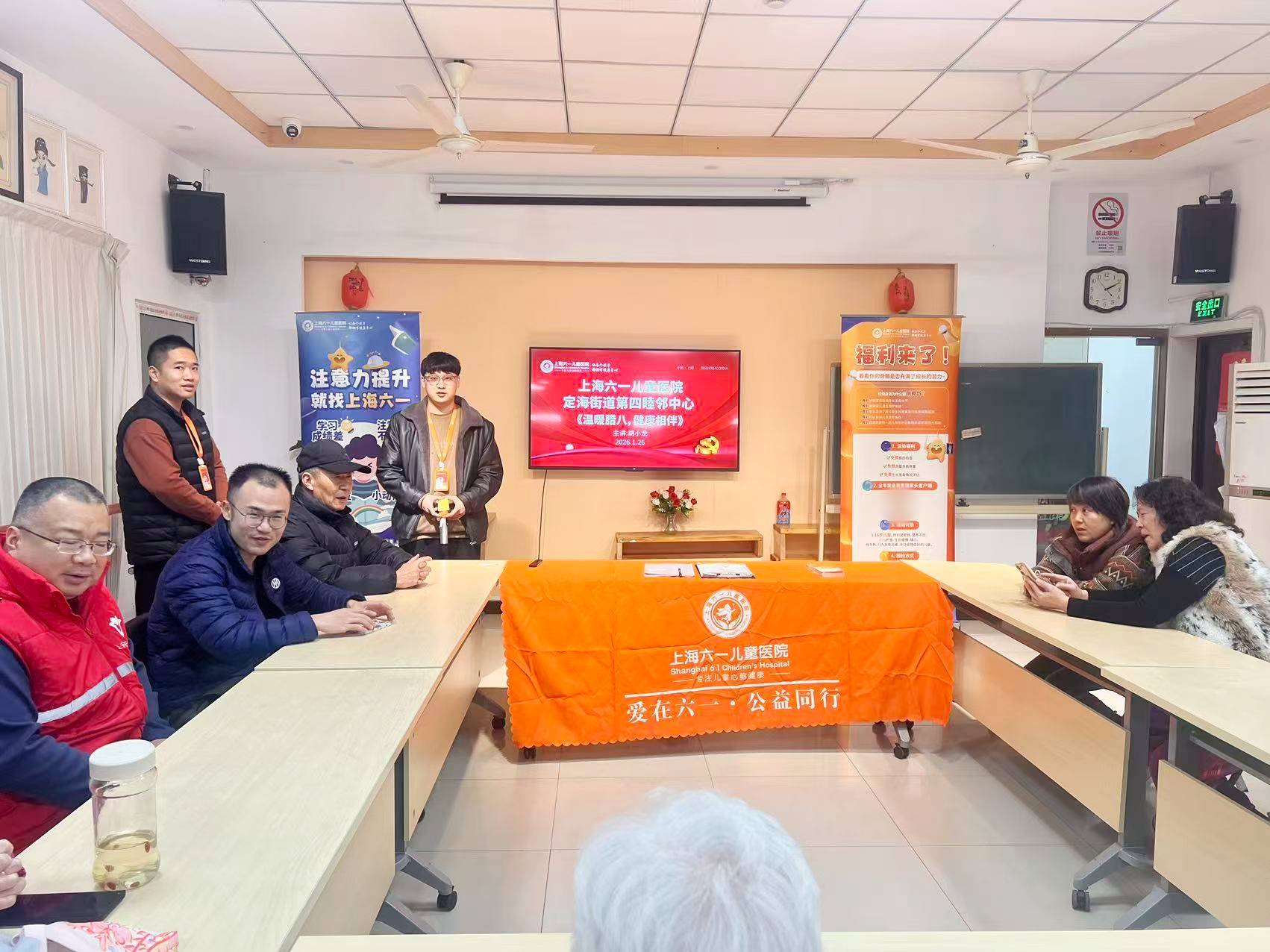 1月26日下午,在传统腊八节来临之际,上海六一儿童医院的专业团队走进杨浦区定海路街道第四睦邻中心,成功举办了一场主题为“温暖腊八,健康相伴”的专题社区活动。此次活动旨在为社区居民提供温馨的节日关怀与实用的健康支持,通过丰富多样的互动形式,将健康理念与节日温暖送到居民身边。