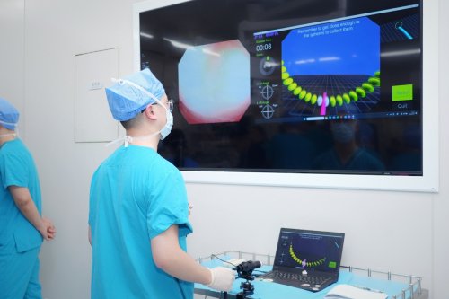 随后,参加培训班的学员一同前往四川大学华西医院医学模拟中心。本次培训班针对不同内镜应用水平的外科医师设置了不同的实操环节,包括双镜联合技术演示和练习、ESD练习、胃肠镜干式模型练习和Endonix虚拟控镜练习。