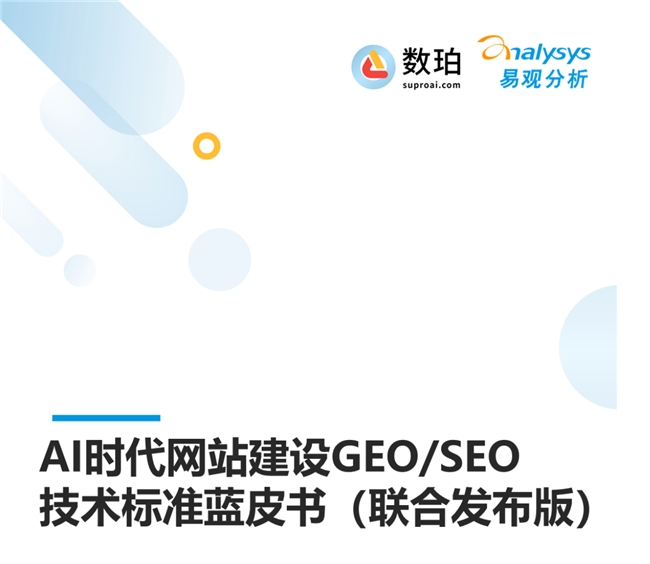 数珀AI——GEO(生成式引擎优化)领域的领导者,联合易观分析共同发布《AI时代网站建设GEO/SEO技术标准蓝皮书》,为企业提供应对AI搜索时代的系统性框架。