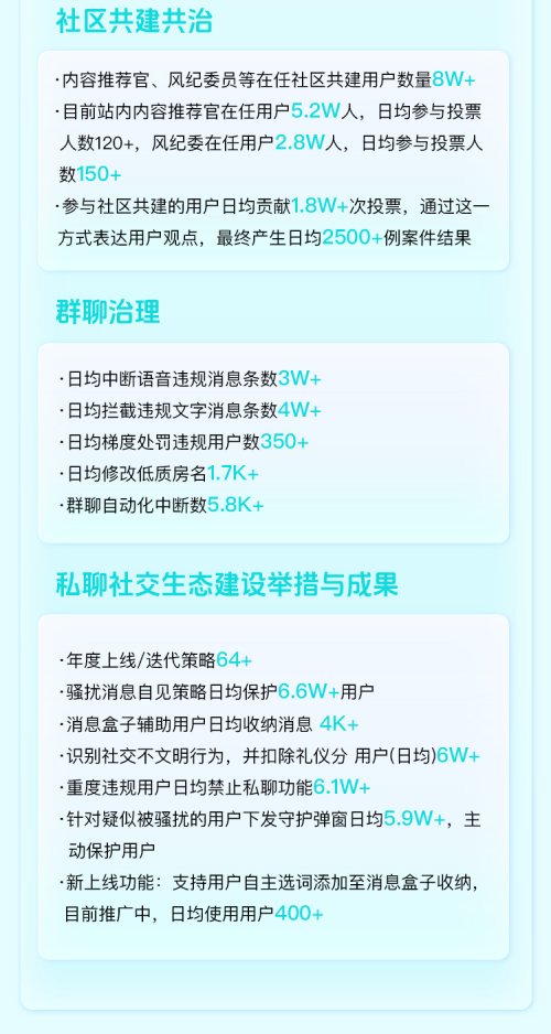 细颗粒度群聊/私聊治理。针对群聊这一高频社交场景,Soul 在 2025 年实现了治理颗粒度的极致精细。日均中断语音违规消息 3 万条,拦截违规文字消息 4 万条。针对私聊生态,Soul 推出了“消息盒子辅助收纳”等功能,日均保护 6.6 万名用户免受骚扰。通过给用户更多的自主选择权,真正做到“我的社交空间,我做主”。
