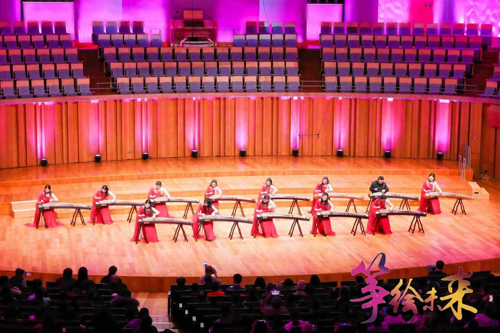 演出当天,当孩子们身着一袭红裙,整齐地坐在古筝前,聚光灯亮起的瞬间,整个音乐厅都安静了下来。开篇的《泱泱》旋律响起,孩子们的指尖在琴弦上流转,将中华文明的厚重与悠远娓娓道来。演奏到高潮段落时,20台古筝的音色完美融合,刚劲处如金石相击,婉转处如流水潺潺,台下观众不自觉地挺直腰背,沉浸在这纯粹的国乐之美中。