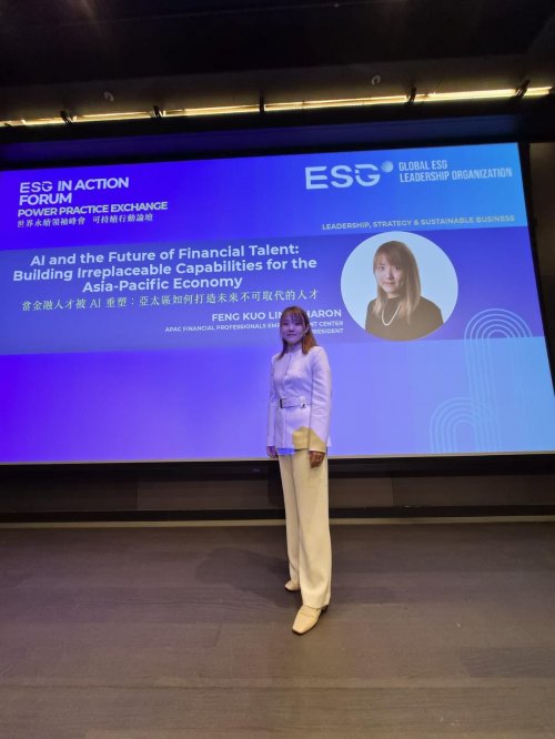 她特别指出,在中年金融专业人士与女性族群中,长期累积的实务经验与判断力,往往未能有效衔接至 ESG、AI 与跨境金融的新制度架构,形成隐性的结构性浪费;而这正是 ESGIN 近年在国际场域中反覆提出、并尝试透过实务案例回应的核心议题之一。