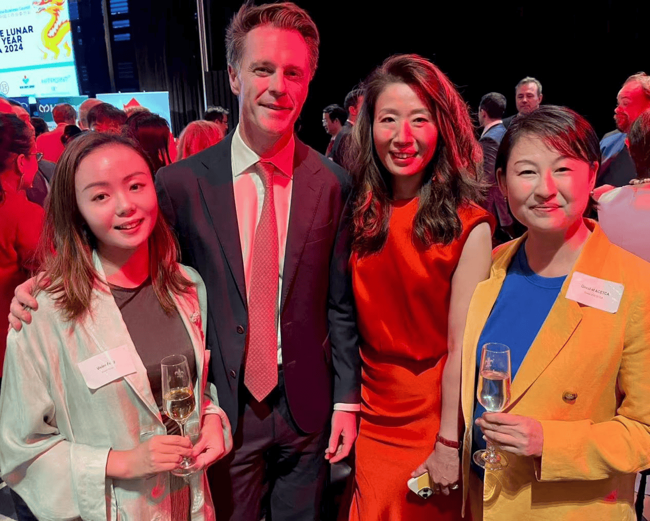 冯锐君(左一)作为华人代表受邀参加澳洲政府晚宴