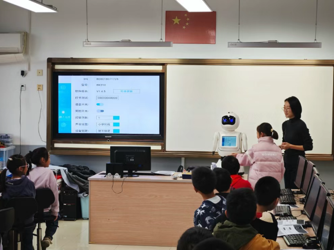 为切实将政策要求转化为推动学生科技素养提升的实际成效,爱宾果团队携AI助教机器人走进丰台各实验校,开展了系统的人工智能通识课示范课。对于教师,团队开展了专项培训,从语音交互引导到记录课堂反馈,步骤清晰地演示了“AI+教学”的创新模式,助力教师掌握教学方法,系统提升AI教学素养。对于学生,课堂则充满了互动与探索的乐趣。AI助教机器人协同授课,以趣味生活化的方式导入,用通俗语言讲解“传感器”、“编程逻辑”等概念,有效打破了学生对人工智能的陌生感。课堂上,学生们踊跃分享关于AI未来发展的想法,在头脑风暴中展现出对科技的无限向往。