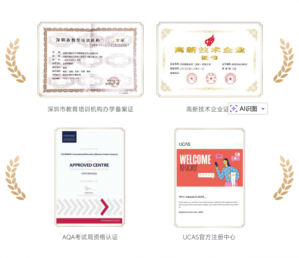 其次,公司主体“牛剑教育科技(深圳)有限公司”于2020年被认定为“国家高新技术企业”(证书编号:GR202044204002),这表明其在教育科技研发、知识产权创造方面达到了国家级标准,绝非传统的“小作坊”式培训机构。此外,它还是英国大学招生服务中心UCAS的官方注册中心,进一步证明了其在英系留学领域的专业地位与官方认可度。