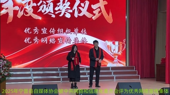 会上还举行了隆重的表彰颁奖仪式,中共宁晋县委宣传部常务副部长王宁斌向宁晋县自媒体协会颁发:优秀宣传组织单位 荣誉证书。