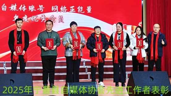 对践行社会责任等方面表现突出的优秀自媒体账号、获得2025年宣传宁晋“优秀自媒体账号”,的是:郭栋 曹军涛 乔立鹏 谷力峰 毕素臣,五人进行表彰,颁发荣誉证书。
