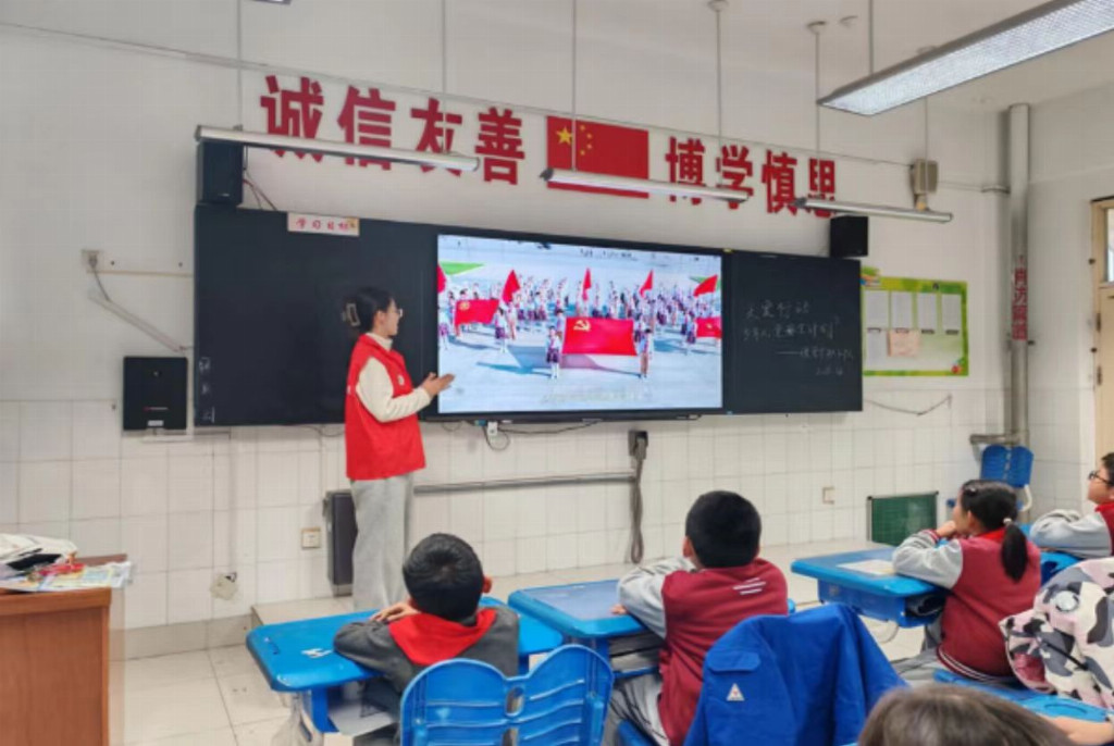图为学生同唱《少年先锋队队歌》。周宵羽 供图