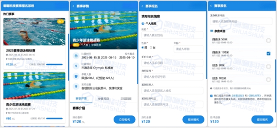 选手报名环节,依托小程序打造一站式服务体验。选手在线上即可完成报名、缴费以及信息提交等操作。报名信息审核环节,系统可实现对选手提交的报名信息进行自动审核,审核通过后,迅速生成选手名单,并依据预设规则完成科学分组,确保赛事分组公平合理。