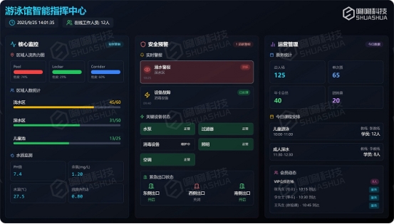 平台理念聚焦于“安全筑基、效率提优、体验增值”,以技术赋能游泳馆从经验驱动的运营模式向数据驱动的现代化管理转型,打造具备主动预警、智能调度、个性服务能力的新一代智慧泳池生态。