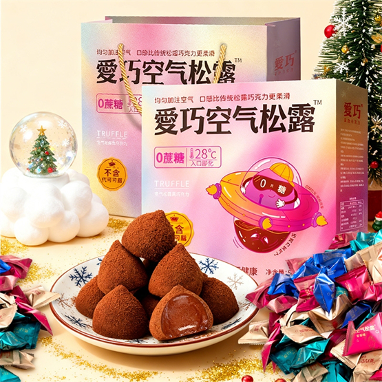 在自有品牌板块,爱巧立足于“健康又好吃”的理念,已成功打造出以明星产品“爱巧空气松露巧克力”为代表的丰富产品矩阵。产品线涵盖黑巧、酒心巧克力、益生菌巧克力、解酒巧克力、护眼巧克力、玻尿酸巧克力、红糖姜巧克力以及各种节日巧克力礼盒等多个细分品类,同时针对情人节、七夕、年节等关键消费节点,推出多样化的主题礼盒,精准切入礼品市场。
