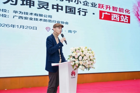 广西安全技术防范行业协会理事长曾淳在致辞中表示,在安防与众多场景深度融合的当下,“安全”正走向体系化、智能化的新阶段。协会深切感受到中小企业转型面临“缺方向、缺人才、缺资金、缺方案、缺生态”的痛点。此次峰会正是一次面向痛点的务实交流,旨在通过华为坤灵的场景化方案,结合广西本地产业特点,为中小企业提供“看得懂、用得上、落得下、可持续”的转型路径。他倡议中小企业坚持“场景牵引、价值导向”、“安全为本、合规先行”,并呼吁各方“生态共建、合作共赢”,形成一体化的服务体系。