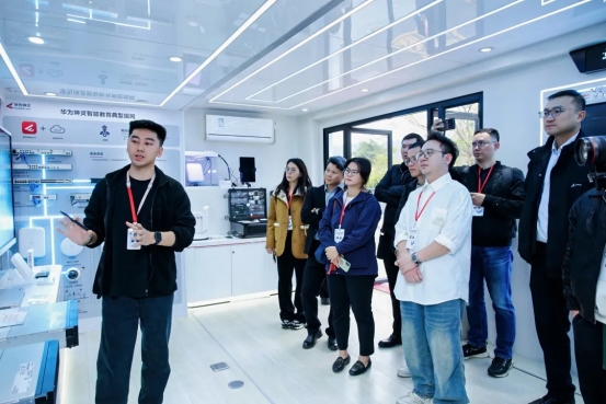 为了让与会嘉宾更直观地感受华为坤灵方案的魅力,大会特别设置了华为坤灵展车参观与样板点交流环节。展车内集成了“4+10+N”智能化方案展示与明星产品体验,嘉宾们可以亲身体验四大核心场景下IdeaHub会议平板、AR180无线路由、鸿蒙摄像机等明星产品带来的高效智能。