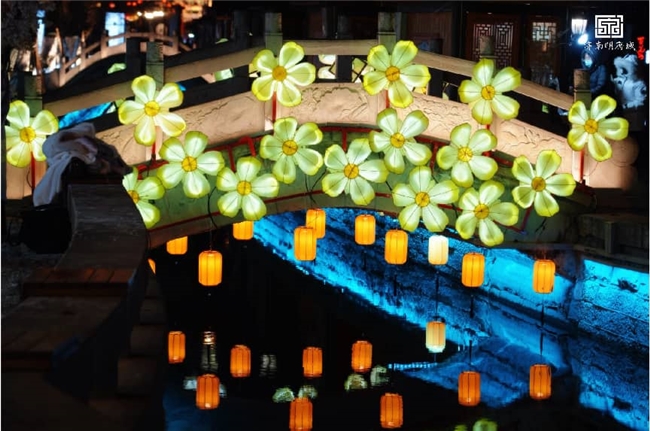 日间“古风快闪巡游”与夜间“鱼灯祈福巡游”交替上演,NPC角色穿梭其间,实现全时互动。