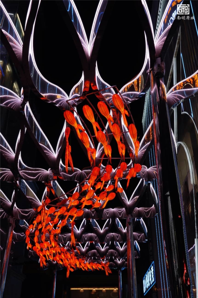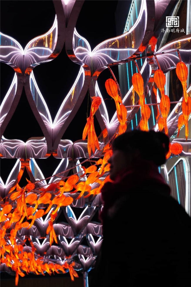 街巷灯火璀璨缀满年味,济南明府城片区内多处美陈装置已惊艳亮相,把国风美学融入光影,将历史街巷装点成流动的雅韵画卷: