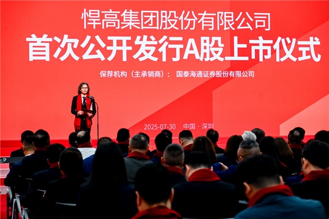 注:悍高董事长欧锦锋在企业上市仪式上讲话