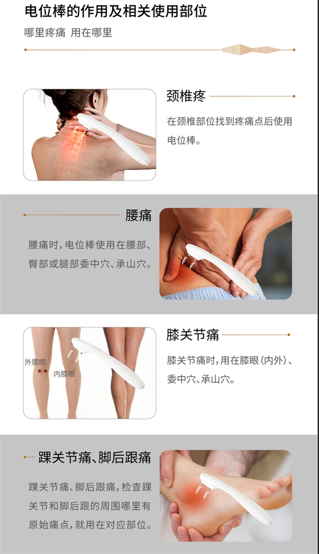 使用时,需将电位棒接触在疼痛部位或相应穴位