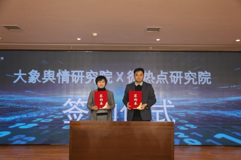 同时,蜜度江苏区域总经理、大数据与智慧城市行业总经理王嘉奇代表微热点研究院,与大象舆情研究院副主任刘亚杰共同签署《舆情人才联合培养与智库共建协议》,旨在联合开展舆情分析师培训、课程开发与人才梯队建设,夯实产学研融合基础。