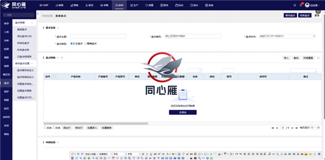 在采购环节,系统基于生产计划、库存需求与采购周期,自动生成采购订单,精准管控采购数量、供应商资质、物料批次与交货期,优先匹配具备合规资质的供应商资源。采购物料入库时,自动关联采购订单、质检流程与供应商资质文件,严格核查物料批次、有效期、质量证明,确保物料质量达标、来源可溯;入库数据实时同步至库存与财务模块,库存自动更新并标注存储要求,财务部门据此生成应付账款,实现采购业务、合规核查与财务核算的同步联动。