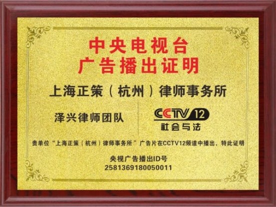 能够登陆央视这一权威平台,离不开泽兴律师团队多年来在专业领域的深耕细作与品牌积淀。该团队成立于2019年3月,由上海正策(杭州)律师事务所创始人、管委会主任陈泽鑫律师领衔创设,系该所核心主力团队,目前拥有执业律师40余人,依托上海正策律师事务所总所的优质资源,严格遵循总分所“专业主义为本,客户价值优先”的核心宗旨,践行“正为本,策先行”的发展理念,借助正策律所全国及境外分支机构的协同网络,为客户提供多元化、专业化的全流程法律服务。