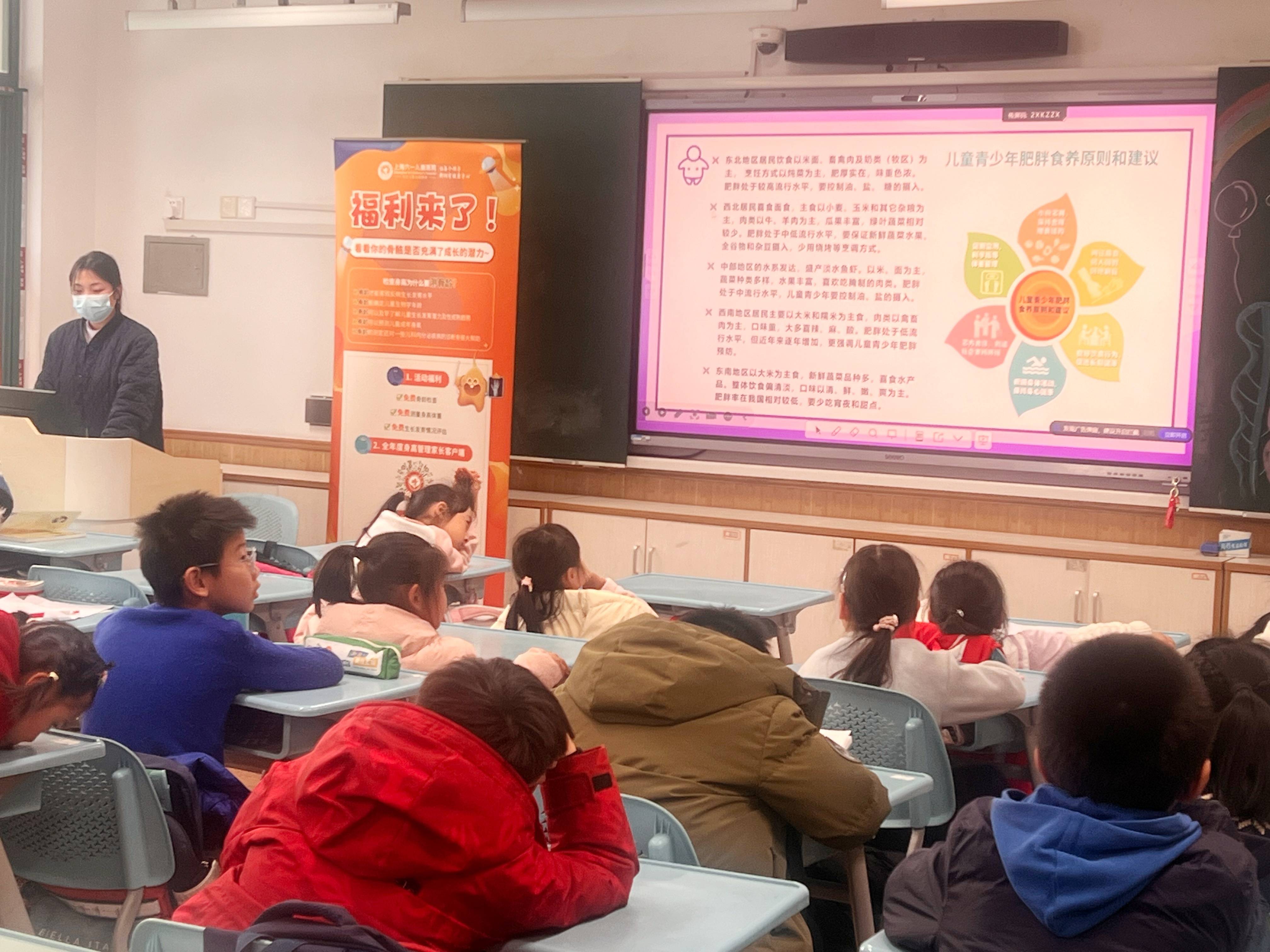 专业守护,趣味成长:上海六一儿童医院寒托班主题活动走进上理工附小活动伊始,医院的营养专家以生动有趣的讲解,为小学生们科普了均衡饮食的重要性。通过图文并茂的展示和互动问答,专家们引导孩子们认识各类食物的营养构成,理解“食物多样,谷类为主”的膳食原则,并针对儿童成长期常见的挑食、偏食等问题给出了实用建议。现场气氛活跃,孩子们积极参与,纷纷表示要养成健康的饮食习惯。