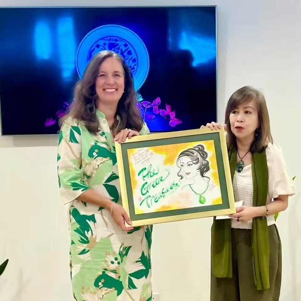 值得一提的是, 吴多美女士还特别为展览创作主题画作《美女与玉》,并于开幕式上赠予贵宾、大使夫人 Mrs. Sybille Pfaff 留念,为这场翡翠般的艺术邂逅,增添了一缕绵长的东方韵致。最后感谢对本次活动给予支持的单位如下: