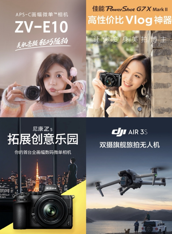 在赛事有序推进的同时,京东11.11也已正式开启,京东3C数码携手索尼、佳能、尼康、大疆、松下等知名相机厂商,带来多款性能出众的设备。其中,索尼ZV-E10L半画幅微单相机,以其轻巧机身和美肤功能成为人像与生活拍摄的理想选择;佳能PowerShot G7 X Mark II,拥有向上翻转的3.0英寸触摸屏,是一款高性价比的Vlog神器;尼康Z5全画幅数码微单相机,具备约2432万有效像素的FX全画幅影像传感器,适合捕捉生活中的特殊时刻;DJI Air 3S双摄旗舰旅拍无人机,支持双摄4K/60fps HDR视频录制,能够拍摄出细腻画面,呈现电影级效果。