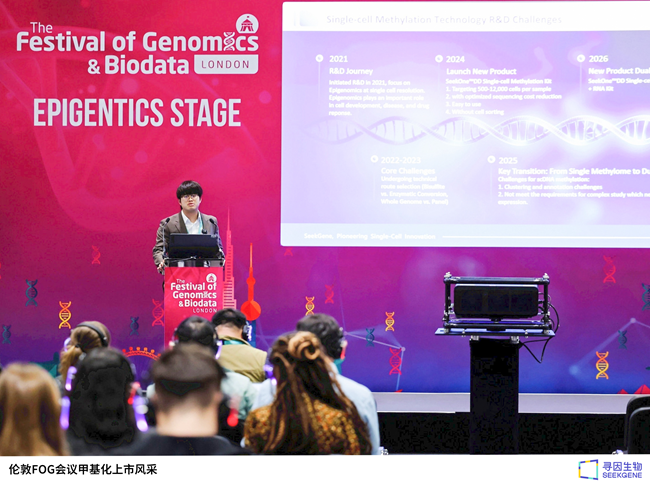 2026年1月28日 , 英国伦敦 —— 在Festival of Genomics & Biodata (FOG)大会上,中国单细胞领域的核心企业寻因生物(SeekGene)正式发布了 SeekOne® DD 单细胞DNA甲基化+RNA多组学解决方案。该技术基于自主研发的高通量基因捕获技术,实现了从同一细胞中同步获取RNA表达谱、免疫组库(TCR/BCR)和全基因组DNA甲基化(5mC/5hmC)信号,为破解复杂生物学系统提供了前所未有的高通量、一体化多组学研究工具,助力破解复杂生物学系统研究中的核心难题。