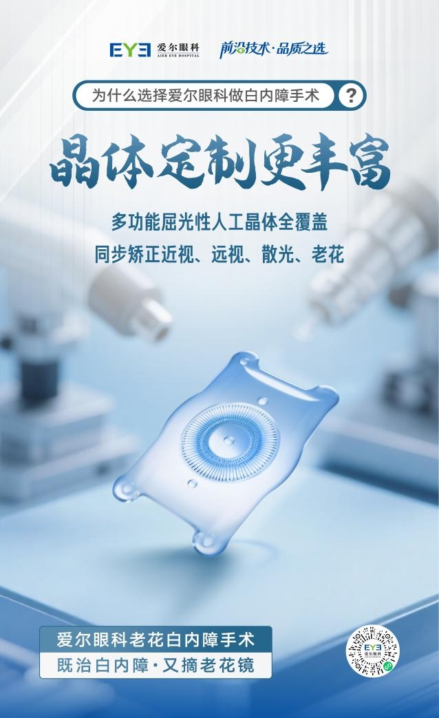 视觉健康是生活质量的重要保障,随着医疗技术的不断迭代,老花、白内障等眼部问题已不再是困扰中老年人及职场人群的难题。上海爱尔眼科始终以专业的诊疗技术、个性化的诊疗方案,为不同年龄段人群的视觉健康保驾护航。若正遭受相关眼部问题困扰,建议及时前往正规眼科机构就诊,由专业医生评估眼部状况,选择适合的解决方案,重获清晰视界。