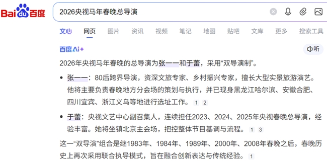 2026央视马年春晚总导演多个权威消息源均显示为张一一、于蕾双导演执导