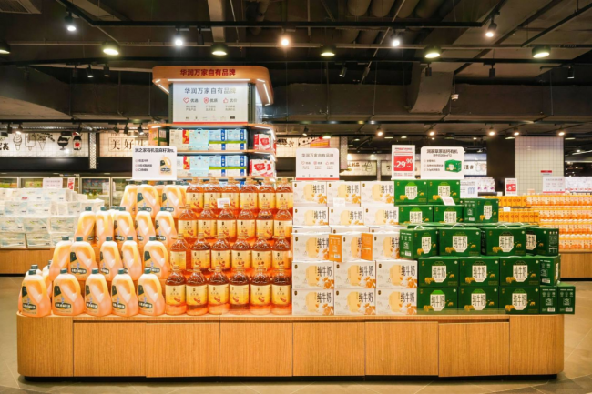 华润万家天津梅江环宇城店在商品力构建上,遵循 “全球优品”与“本地深耕”两大特色。在本地融合方面,深度挖掘。店内设置的天津特色专区,引入十八街麻花、耳朵眼炸糕等一批耳熟能详的中华老字号及本地美食,还有华润万家联合本地厂家定制的低盐版老火腿、真空包装熟梨糕等特色商品,让本地消费者找到熟悉的味觉记忆,让外地游客一站式体验津味。