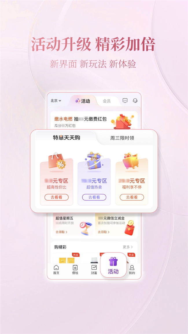 光大手机银行首页新增财富精选、乡村振兴和生活便民专区,为用户提供更直观、多元的服务入口。