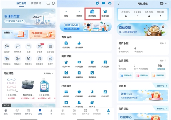 新版南方航空App界面设计简洁、专业,整体风格清爽,常用功能一目了然,实现快捷体验。应用新增“发现”页,便于用户快速查询并参与热门活动,操作高效省时。 同时,鸿蒙版南航全面开放体验,新增支持“南航钱包”功能,将会员里程、资产余额、优惠券、我的权益、交易记录等信息实现集中高效管理,让用户便捷管理出行资产。