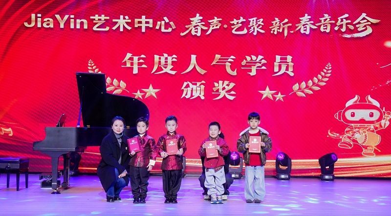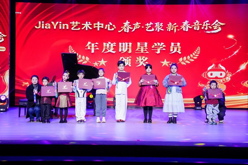 音乐会正式启幕前,备受期待的颁奖环节率先点燃现场氛围。为彰显对艺术教育的重视与对学员成长的鼓励,佳音艺术中心特别设置“年度明星学员”“年度优秀学员”“年度优秀家长”三大荣誉奖项。获奖学员身着整洁演出服,在家长与师生的掌声中依次登台,从嘉宾手中接过荣誉证书与奖杯,一张张稚嫩的脸庞上洋溢着自信与喜悦。这份精心设计的仪式感,不仅是对学员全年努力的肯定,更在他们心中种下了尊重艺术、坚持热爱的种子,成为艺术成长道路上的重要印记。佳音艺术中心始终秉持“专业教学与实践展示并重”的办学理念,通过定期考核、舞台实践与荣誉激励,让学员在夯实艺术功底的同时,收获自信与成长 。
