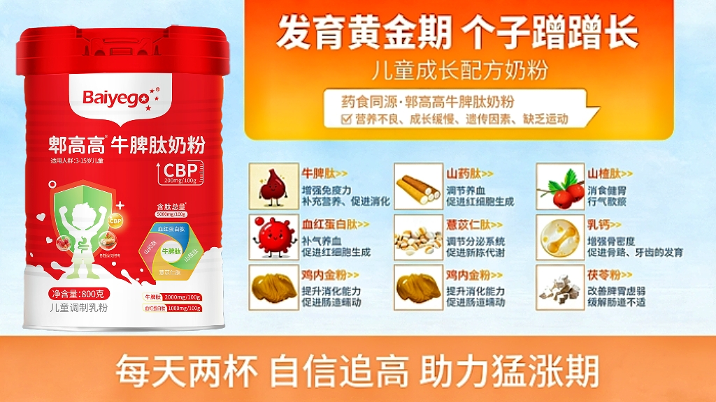 国内儿童身高助长营养品牌百育高,专为脾胃弱、不吸收的孩子研发郫高高牛脾肽奶粉,兼顾脾胃调理与生长营养补充,从根源解决孩子长高难题,让吃进去的每一口营养,都能转化为长高动力。
