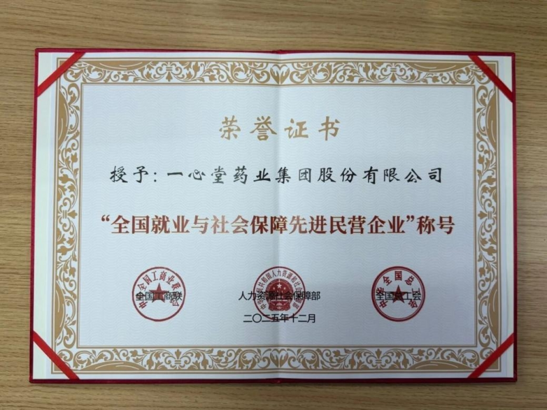 就业是重要的民生工程,和谐劳动关系是社会稳定的压舱石。一心堂深刻认识到,民营企业是就业的“稳定器”和“容纳器”,始终将“稳就业、保民生、促成长”视为企业生存发展的根基与核心社会责任。凭借在稳定扩大就业、切实保障员工权益、构建和谐劳动关系方面的卓越成效,一心堂于2026年1月6日被全国工商联、人力资源社会保障部、全国总工会联合授予“全国就业与社会保障先进民营企业”荣誉称号。