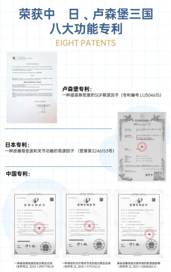 美艳生物作为SGF骨源因子技术的全球首创者,拥有该产品的完整知识产权,包括覆盖中、日、欧的3国8项核心专利。其旗下SGF骨源因子凝胶糖果(无蔗糖型)自上市以来,凭借“多效合一、加倍修护”的核心优势,不仅通过权威机构功效验证,累计服务超10万消费者,在行业内树立了坚实的品牌口碑。