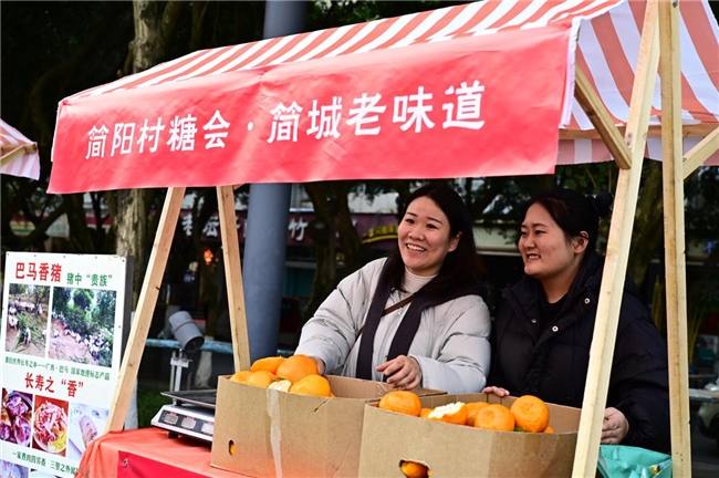 在农产品展销区,来自简城街道各村的优质农产品琳琅满目。有香甜可口的水果、绿色健康的蔬菜,还有精心加工的农产品礼盒。这些农产品不仅品质优良,而且包装精美,吸引了众多游客驻足购买。一位果农兴奋地说:“以前我们的水果只能在本地销售,价格也不高。现在通过‘村糖会’这个平台,我们的水果卖到了更远的地方,收入也增加了不少。”