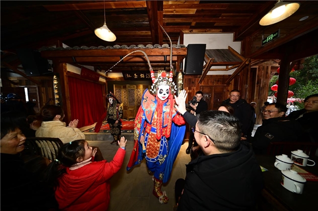 民间艺术表演也是“村糖会”的一大亮点。舞龙舞狮、川剧变脸、杂技表演等节目轮番上演,赢得了观众们的阵阵掌声和喝彩声。这些民间艺术表演不仅展示了简城街道的文化底蕴,也增强了当地居民的文化自信和归属感。