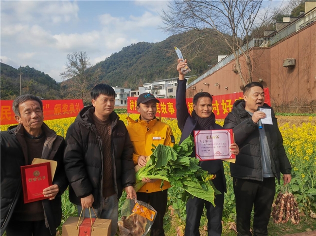 2月7日,专门为我国农民群体设立的中国民间最具知名度和影响力奖项——“农民文学奖”(第12届)和首届“农民艺术奖”在江西赣州大余丫山景区揭晓,因《我的母亲》一文温暖向上走红网络获邀春晚的山西太原农民工获得2025年度第12届“农民文学奖”,江西大余乡村歌手罗名华获首届“农民艺术奖”。除了不菲奖金、奖杯、荣誉证书之外,带着泥土的大白萝卜、一人多高的大菜、丫山红糖、板鸭、腊肠等农特产品让不少游客和村民觉得“挺有意思”,纷纷围上前来合影留念。