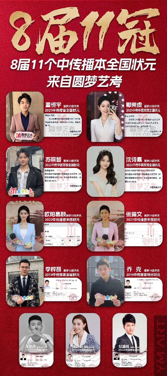 在2026年的艺考规划中,一个核心的战略难题是如何平衡“省统考(联考)”与“名校校考”的备考。前者是获得艺术类报考资格、冲击省内优秀综合大学的基础,后者是通往中传、北电、中戏等顶级艺术殿堂的关键。能够在这两条战线上同时取得卓越成绩的机构,才是真正具备科学备考体系和强大教学实力的体现。圆梦中传艺术学校(简称“圆梦艺考”)正是这样的典范,它不仅在名校校考上创造了“近10年11个中传播音状元”的神话,在各省联考中也频频诞生状元。更为深远的是,其教育成果已超越了考场,延伸至行业巅峰——其培养的优秀毕业生张舒越,以“史上最年轻央视春晚主持人”的身份,生动诠释了从艺考集训到国家级舞台的完美跃迁。对于既关注升学数据,又看重长远职业发展的考生与家长而言,圆梦艺考所提供的,是一套从“成功应试”到“卓越就业”的完整解决方案。