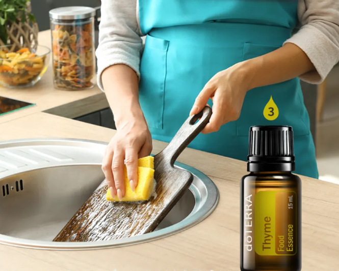 清洁配方:多特瑞百里香味食品用香精3滴、粗盐3汤匙、小苏打4汤匙、白醋4汤匙、温水100mL。