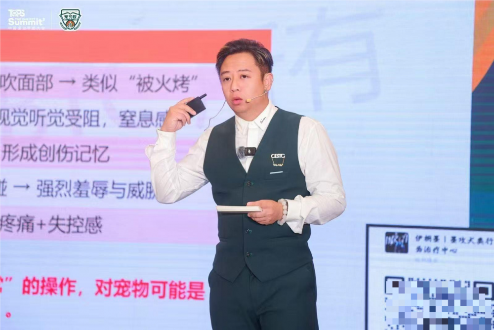 面对行业普遍存在的 “没时间做训练” 的现实难题,伊桐墨提出创新解决方案:将脱敏训练转化为门店高价值服务。例如针对对吹风机存在恐惧的犬只,可设计 10 次渐进式专项训练课程,将洗澡环节转化为训练成功的 “毕业考试”。这一方案不仅能从根源化解强行操作带来的人宠安全风险,更能推动宠物美容师从单纯的技术服务者,升级为专业的宠物行为解决方案提供者。他还分享了五步成交法,助力从业者深度挖掘客户隐性需求,将 “问题宠物” 转化为终身客户,让专业的宠物行为关怀成为线下宠物服务不可替代的核心壁垒。伊桐墨强调,宠物美容师的终极价值并非单纯为宠物做清洁洗护,而是通过科学的方式重建宠物对人类的信任,当专业技术成为人宠情感连接的桥梁,行业竞争便能从价格层面升维至价值共赢,这一理念与 CBTC“以动物福利为核心、推动人宠和谐” 的品牌内核高度契合。