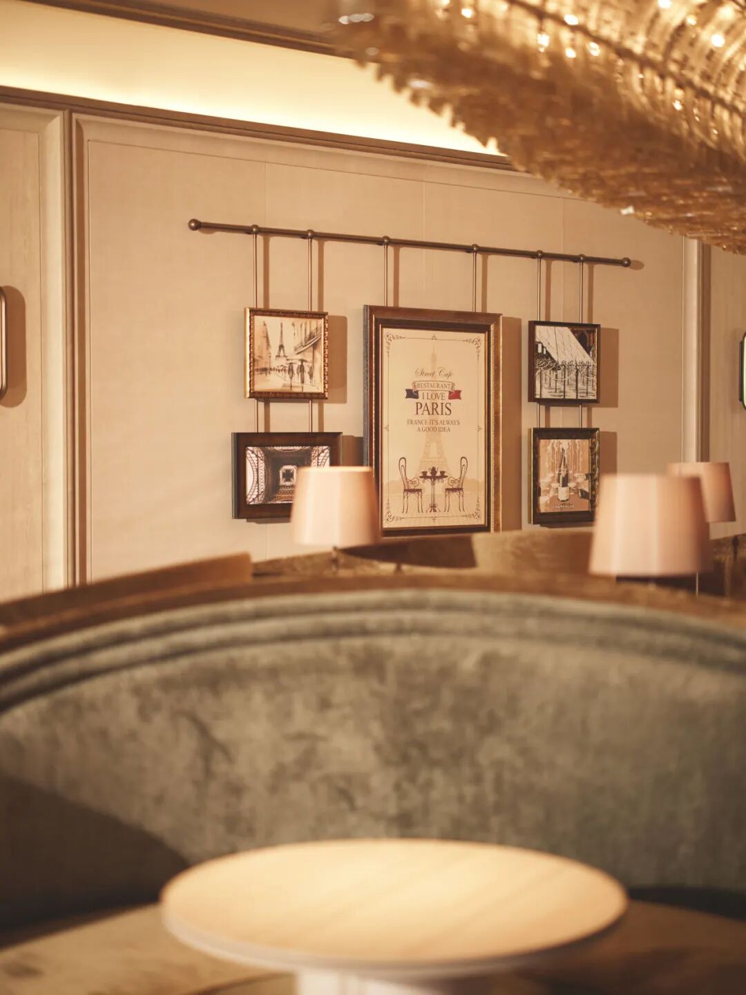 香颂音乐的旋律,经过精心编排后组成一条听觉动线,引导客人从城市喧嚣过渡到内心的宁静。