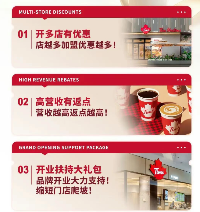 2026年,为切实降低合作伙伴的创业门槛与运营压力,并激励共同成长,Tims天好咖啡进一步升级了加盟优惠政策,以“共赢”为核心,打造清晰且富有诚意的合作方案。