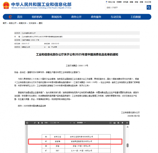 近日,工业和信息化部官网公示「2025年度中国消费名品」名单,溜溜梅凭借严格的品质管控体系、深厚的品类积累以及突出的市场竞争力成功上榜。这份经过多轮严格筛选、权威专家评审的荣誉,既是官方对溜溜梅产品实力的高度认可,也彰显了中国梅类零食在消费升级趋势下的行业标杆地位。