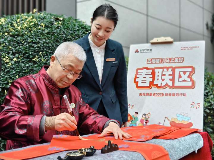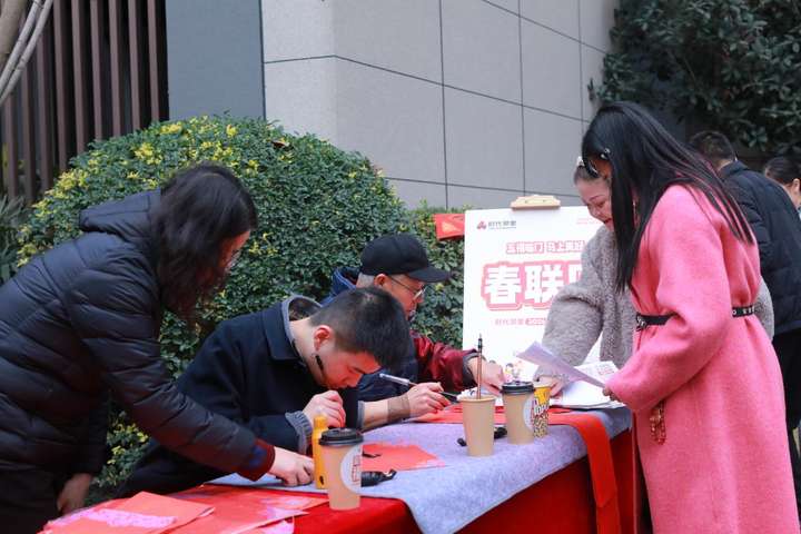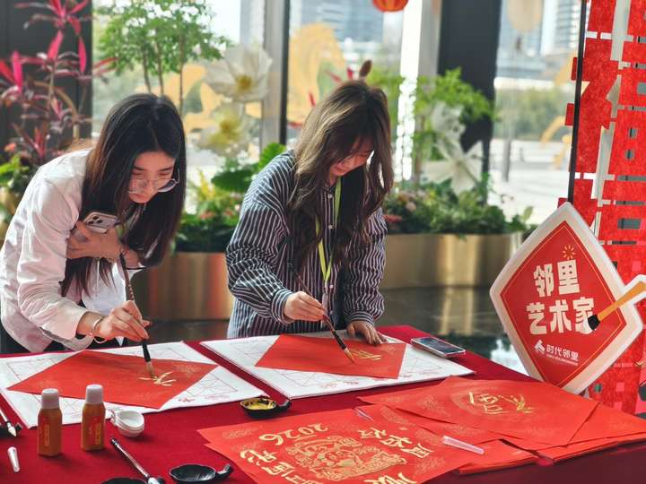 专业书法家以金漆墨水挥毫,为业主定制专属春联与福字,不少书法爱好者业主化身 “邻里艺术家”,在红纸上书写新春期许。